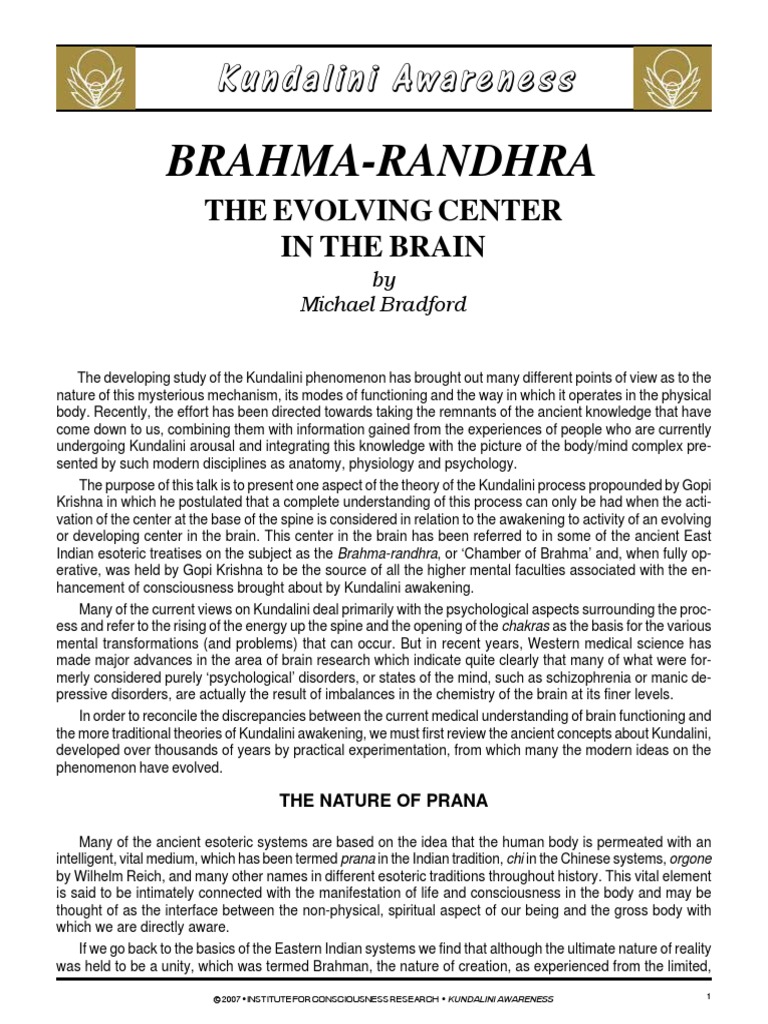 Brahma Randhra / Brahmā raṅdhra is an aperture in the crown of the head through which the soul is said to leave the body in death.