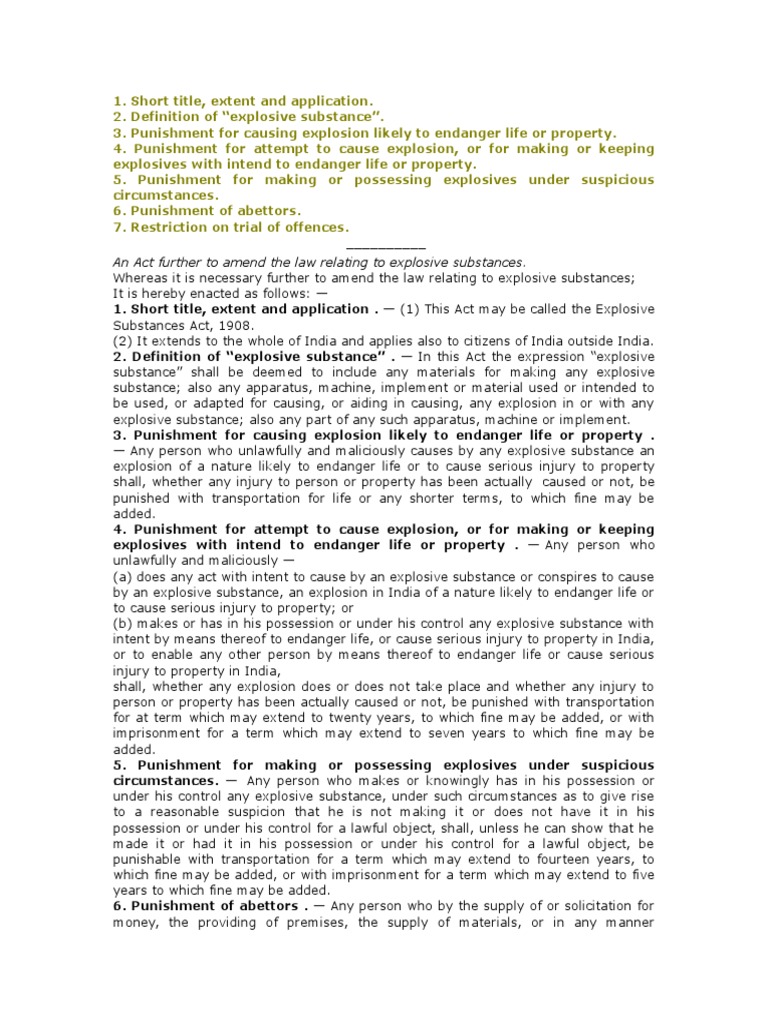 A1908 06 Explosive Substances Act Studocu This act extends to the whole of the union of burma and applies also to all citizens of the union and all servants of the government wherever they may be.