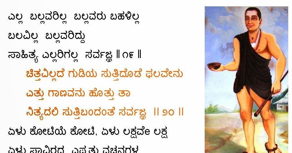 Vachana Sarvagna Vachanagalu In Kannada : Because of the rhythm and pithiness, the songs (or vachanas , as they are called in kannada) of sarvajna assume the height and status of epigrams comparable.